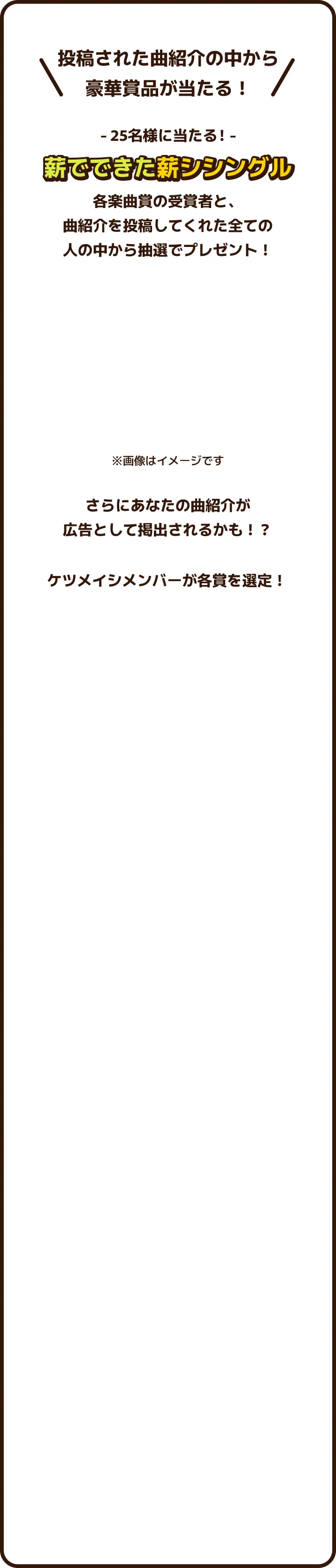 ※当選発表前に、応募したプラットフォームのケツメイシ公式アカウントのフォローを外すと応募対象外となりますのでご注意ください。